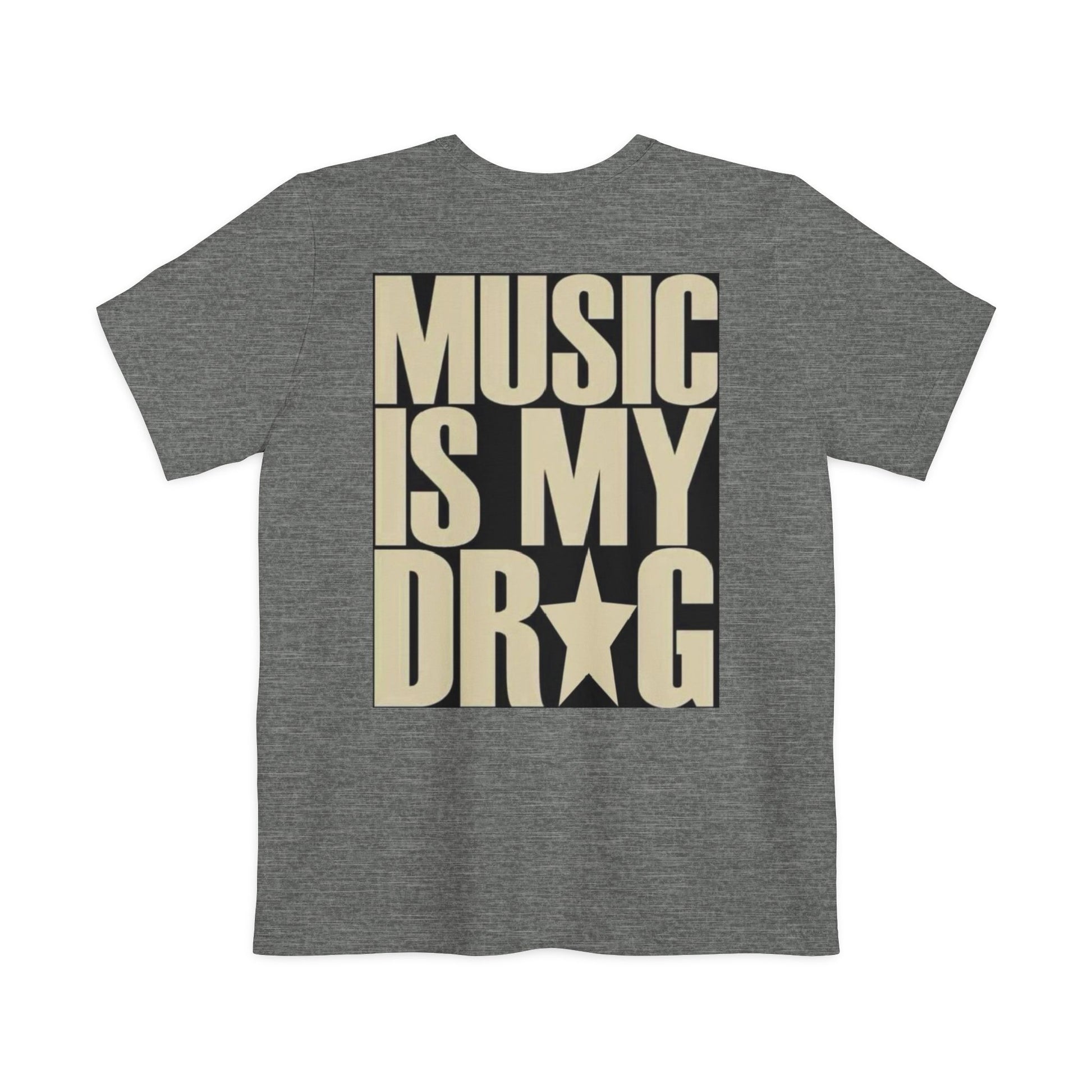Soft, light, and quietly bold — this pocket tee speaks in short declarations. A small, reserved chest print reads “no music no life,” while a larger, vintage-inspired block design on the back proclaims “MUSIC IS MY DR★G.” It feels like a late-night drive with the windows down: familiar, a little raw, and full of heartbeat. Wear it to rehearsals, record-store dives, or when you just need to carry that loud part of you in an understated way. The pocket gives it a lived-in, musician’s utility; the retro typography channels vinyl-era grit. It settles into your rotation and becomes the shirt you reach for when you want to feel seen by sound.