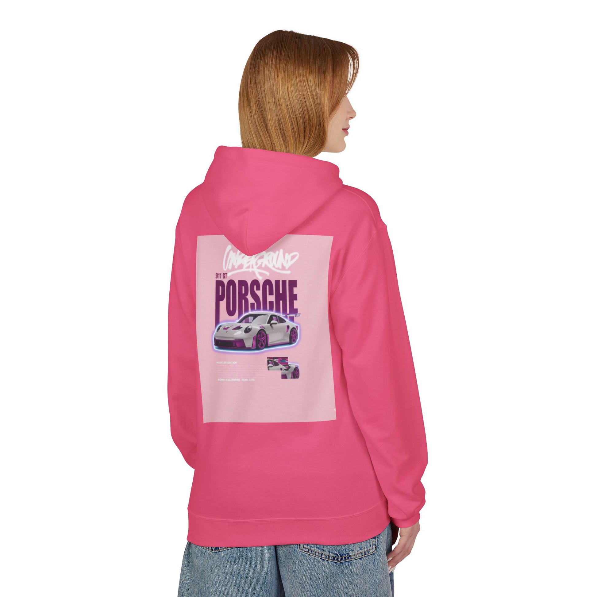 This midweight fleece hoodie brings relaxed comfort and vintage racing flair into everyday wear. The soft, brushed interior and dropped-shoulder silhouette feel effortless while the color-matched two-piece hood and pouch pocket keep you warm on cool drives or slow mornings. The back features a bold retro Porsche-inspired graphic in pastel pinks and lilacs—nostalgic, sporty, and unapologetically playful. Built from ring-spun cotton blends with a breathable 100% cotton face (varies by color) and a medium-heavy weight, it drapes cleanly and holds prints with crisp detail. Ethically produced with OEKO-TEX Standard 100 certification and mills partnered with FLA and WRAP, it’s a choice that reads both stylish and considered. Wear it to lean into weekend car meets, late-night drives, or as your go-to layer for city strolls when you want something that looks like you thought about it.